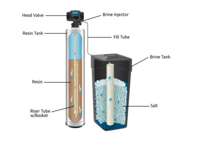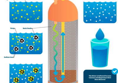- Las perlas de resina en el tanque atraen y retienen los minerales del agua dura, eliminándolos del agua.