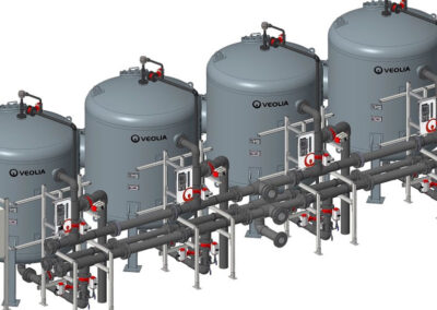 Los cartuchos filtrantes capturan partículas suspendidas, lo que ayuda a reducir la turbidez del agua. Su capacidad de filtración es regulable según el tamaño de las partículas a retener, determinado por el diámetro de filtración de los cartuchos, que puede variar de 1 a 100 micras (μm).